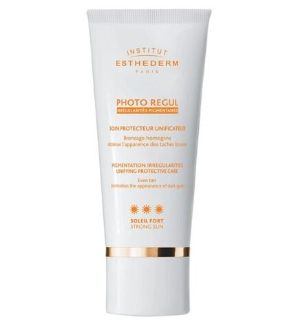 Le soin solaire PHOTO REGUL SOLEIL FORT permet d’atténuer les taches pigmentaires en réduisant le contraste entre les zones hyperpigmentées et la peau bronzée.