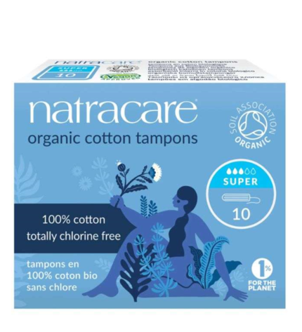 Les tampons Natracare sans applicateur sont fabriqués en coton 100 % biologique. Au fur et à mesure que le coton absorbe le flux menstruel tout en douceur, le tampon s’élargit.