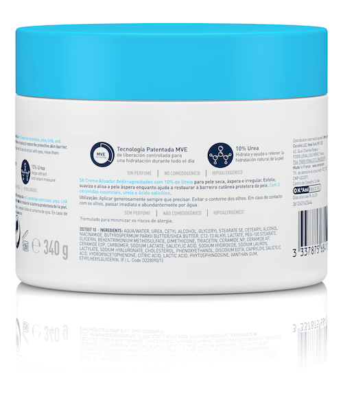 Exfolie, adoucit et lisse les rugosités. Aide à restaurer la barrière cutanée. Aux 3 céramides essentiels, 10% d’urée et acide salicylique.