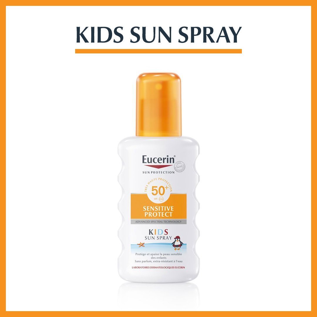 EUCERIN Spray solaire pour enfant SPF50+ UVA/UVB. Protège la peau des coups de soleil. Protège des effets néfastes du soleil, sans parfum – 200ml.